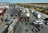 Hundreds of farmworkers and truck drivers blocked the Mexican side of a major border bridge with the United States on …