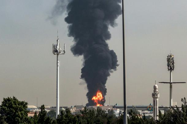 Smoke rises from a fire near Dubai International Airport after a 'drone-related incident'
