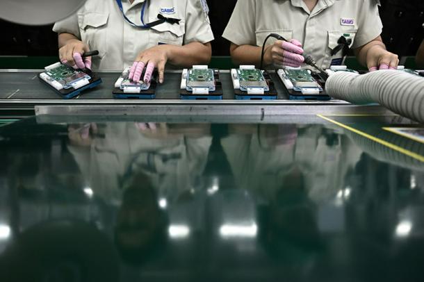 At a Casio factory in Thailand, assembly line workers slotted green circuit boards into place and popped cuboid buttons labelled “DEL” from a plastic tub onto pastel-blue calculator frames.
