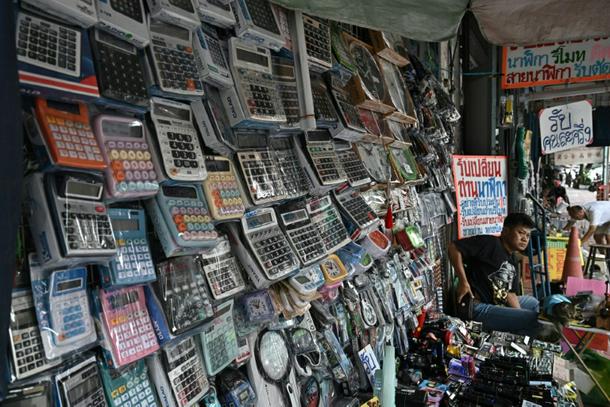 Thitinan Suntisubpool, co-owner of a shop selling red bags and beckoning cats in Bangkok’s Chinatown, said she loves how durable her big calculator is, having dropped it several times.