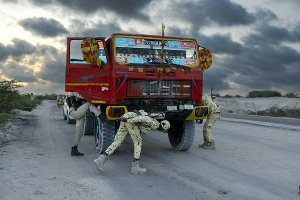 As dusk fell, AFP watched as security officers searched each car, tuk-tuk and truck that approached Jazeera checkpoint, 10 kilometres (six miles) from Mogadishu.