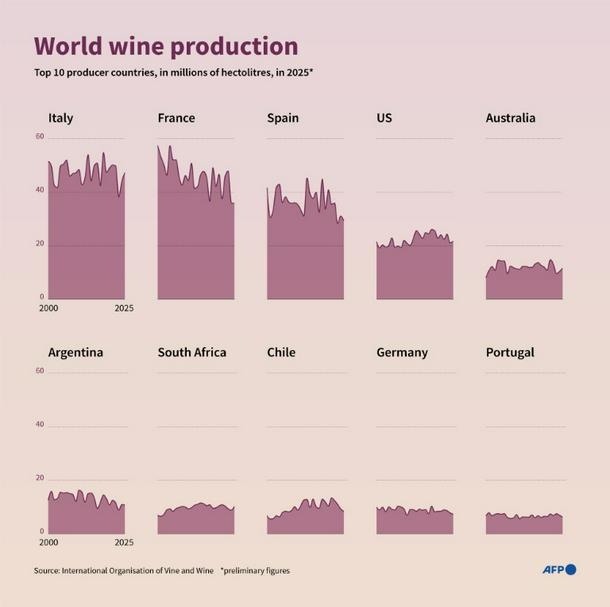 Paris (AFP) - Global wine production is on course for a modest recovery in 2025 after suffering a sharp downturn last year, the industry’s international body said Wednesday.