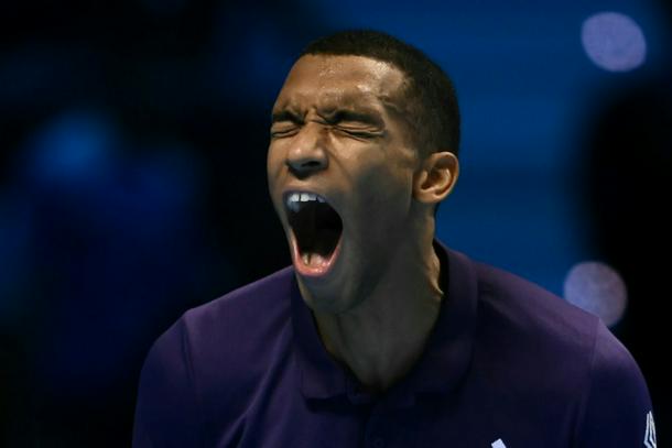 Felix Auger-Aliassime celebrates after beating Ben Shelton