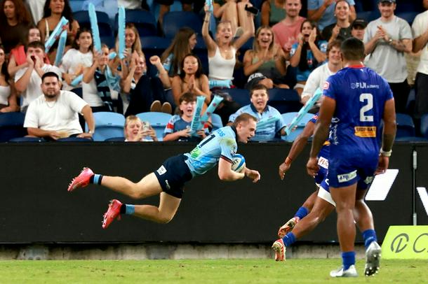 The 21-year-old lit up the Sydney Football Stadium on Friday evening with a special solo effort that turned a frenetic match against Fijian Drua in the Waratahs’ favour just before half-time when they were trailing 10-7.