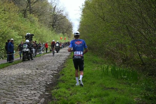 Mathieu van der Poel fell victim to the fearsome cobbled section through the Arenberg forest at Paris-Roubaix