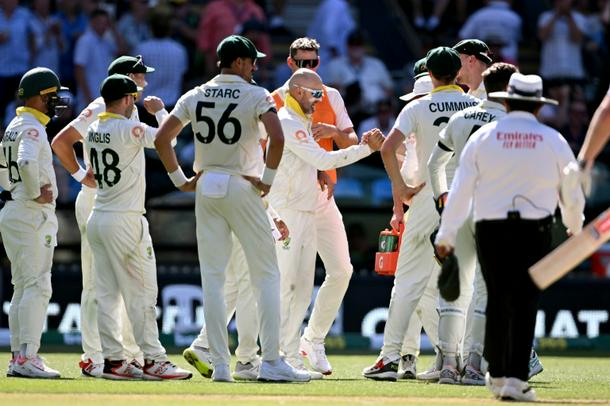 With the pitch deteriorating, Lyon unleashed another trademark delivery to bowl Stokes, then tempted Crawley down the wicket to be stumped by Carey, leaving England’s Ashes campaign in tatters.