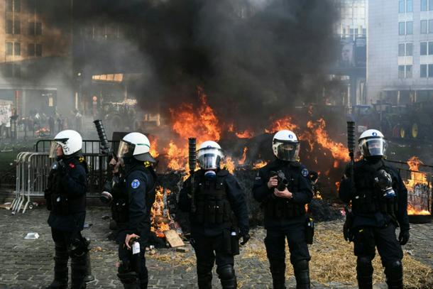 Brussels (Belgium) (AFP) - Protesters lit fires and hurled potatoes at riot police who responded with teargas and water cannon in Brussels Thursday, as tensions boiled over at a farmer demonstration against the EU’s planned trade deal with South American bloc Mercosur.