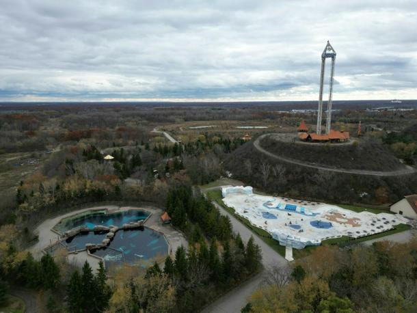 Aerial view showing various belugas still held in captivity Canada's Marineland