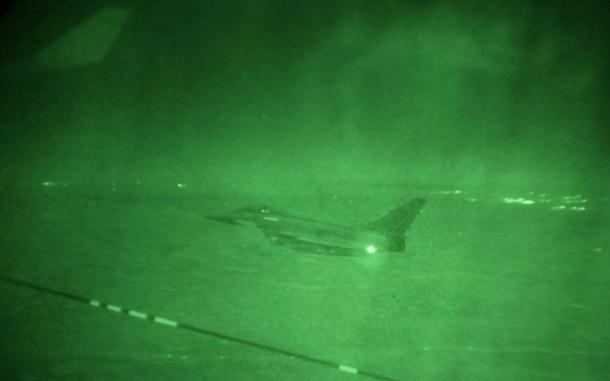 Video footage recorded on January 3, 2025 and released by the British Ministry of Defence shows a Royal Air Force Typhoon aircraft air-to-air refuelling during a joint patrol with French aircraft over Syria