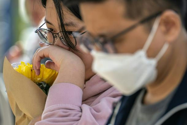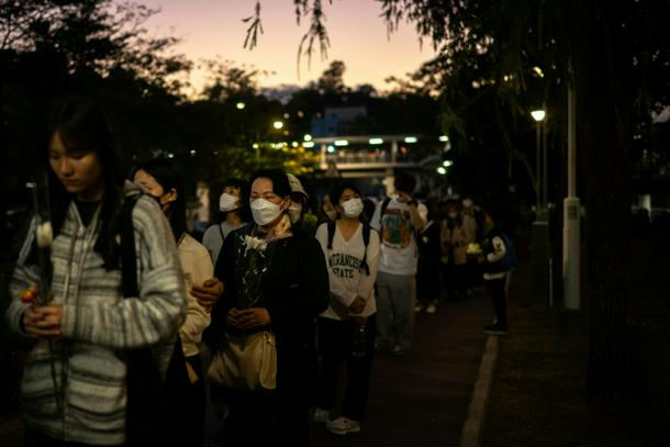 People near Wang Fuk Court in Hong Kong mourning the world's deadliest residential building fire since 1980