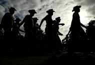 Brandishing bamboo sticks and chanting patriotic hymns, thousands of uniformed men parade in central India, a striking …