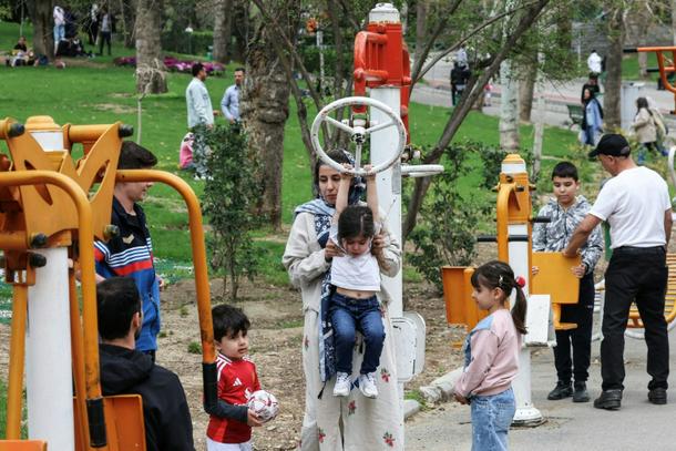 Children play on workout equipment at Tehran's Melat park during "Sizdeh Bedar" (Nature Day), the 13th day after the Nowruz Persian New Year