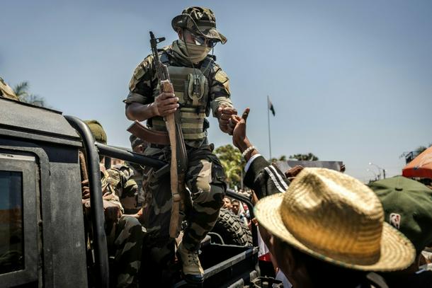 Earlier in the day, mutinous soldiers and security forces who pledged support to the demonstrators at the weekend joined jubilant crowds in front of Antananarivo city hall, in a rally that had an air of celebration amid expectations Rajoelina would step down.