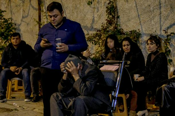 Families of victims wait in front of a hospital after a teenager opened fire in a school in Kahramanmaras, Turkey, on April 15, 2026