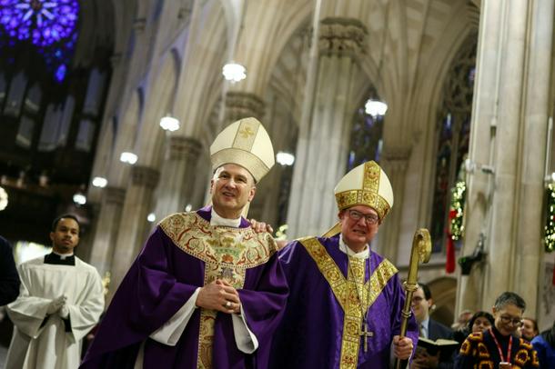 Dolan walked Hicks around the imposing cathedral with one hand on his shoulder, the other on his ceremonial crozier staff, telling congregants “we got a good one.”