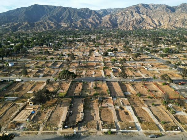 A large area of Altadena was levelled by the fires that swept throught the Los Angeles area in January 2025