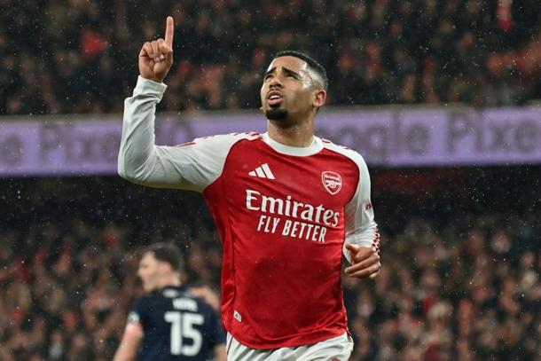 Arsenal striker Gabriel Jesus celebrates after scoring against Wigan