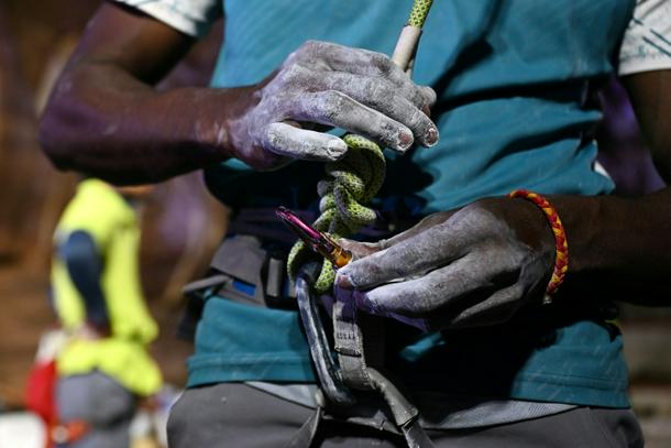 A decent pair of shoes and a harness cost about 10,000 rupees ($106) each. A chalk bag, used to dust the hands for grip, costs 5,000 rupees.