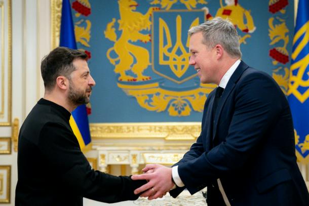 Ukraine's President Volodymyr Zelensky meets with US Secretary of the Army Daniel Driscoll in Kyiv