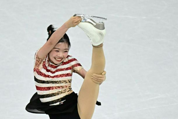 Japanese figure skater Ami Nakai competes in the women's short programme at the Milan-Cortina Olympics