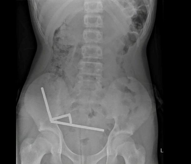 An X-ray showed the magnets had clumped together in four straight lines inside the child’s intestines.