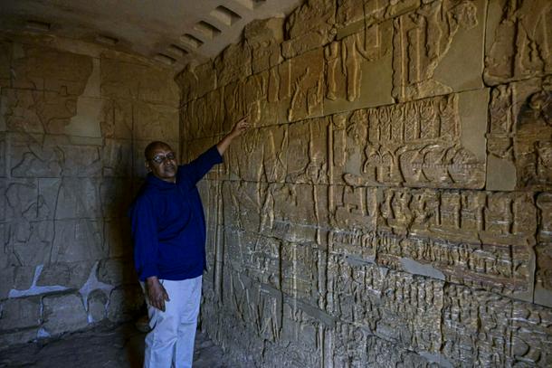 Soliman showed AFP journalists more reliefs: the lion deity Apademak and motifs shared with Egypt, including the gods Amun and Anubis, lotus flowers and hieroglyphics.